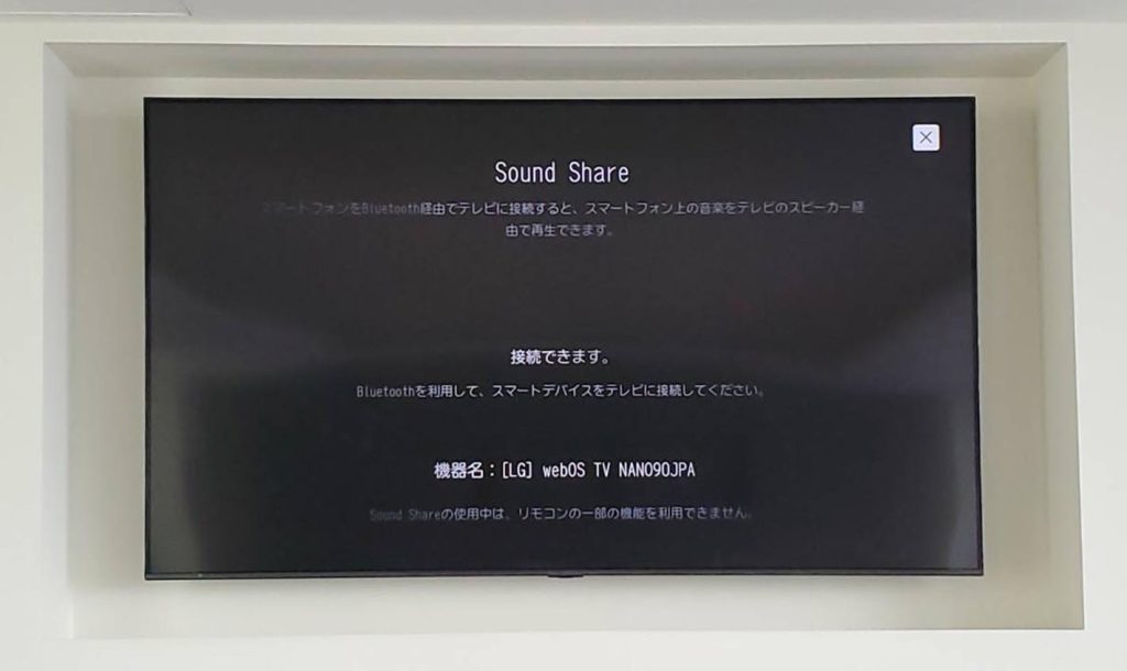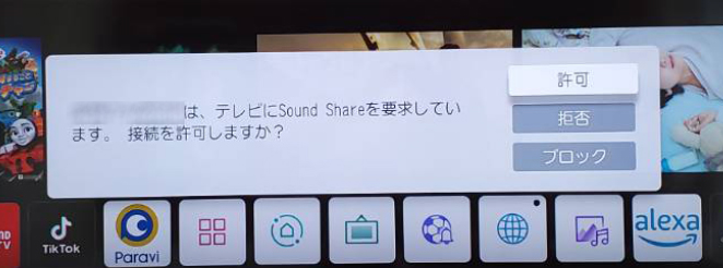 - テレビ側でペアリングの「許可」をするとスマートデバイスが接続され、スマートデバイスの音がテレビスピーカーから音声が出力されます。