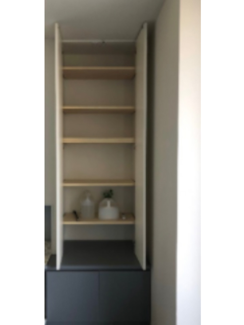 ①この扉の中に、暖炉使用に必要な備品が入っています