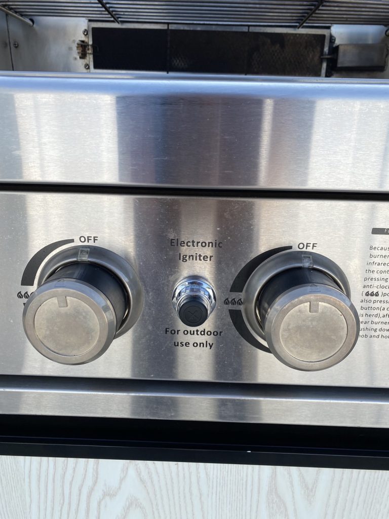 ツマミを左に回して真ん中の黒の点火スイッチを押して点火してください